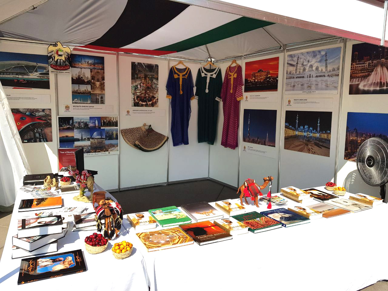Por sua parte, a Embaixada dos Emirados Árabes Unidos está apresentando aos visitantes os progressos no desenvolvimento, beleza e originalidade dos EAU através de imagens dos marcos arquitetônicos mais importantes que atraem anualmente milhares de turistas de todo o mundo, assim como artefatos tradicionais que refletem o gosto artístico do país e seu rico patrimônio. Uma série de roupas e acessórios tradicionais dos Emirados também foram apresentados.