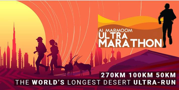 A Ultra Maratona de Al Marmoom oferece uma escolha de três distâncias: a mais longa corrida desértica de 270 km do mundo, que ocorrerá ao longo de 5 dias, bem como contínuos ultra-corridos de 100 km e 50 km. Todas as três distâncias são autossuficientes, em terrenos desérticos mistos.