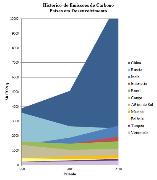 A evolução das tendências das emissões também revela as diferenças na participação dos países emergentes neste cenário: