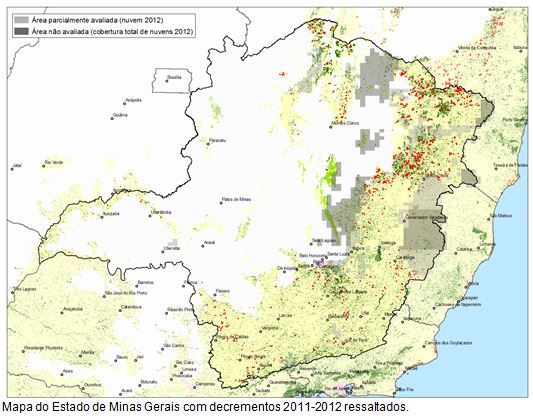 A tabela a seguir indica os desflorestamentos/decrementos (dec.), em hectares, somente das florestas nativas (sem contar mangue e restinga), observados nos períodos de 2012, 2011-2012 e os comparativos com os desmatamentos observados em 2011 e 2010-2011.