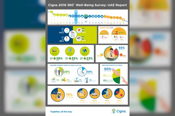 “O bem-estar geral dos Emirados Árabes Unidos alcançou 61,5 pontos, maior que a média global e países como Reino Unido, França e Cingapura”, revelou os resultados da Cigna 360 Well-Being Survey 2018 – Future Assured, lançada ontem pelos negócios da Cigna Corporation no Oriente Médio.