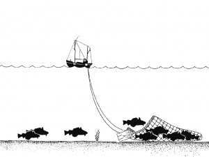 Isto acontece porque as redes deste tipo de pesca, que geralmente busca espécies que vivem próximas ao fundo, como bacalhau, lula e camarão, são puxadas a uma velocidade que carrega praticamente tudo o que estiver na sua frente, não apenas matando espécies que não são alvo da pesca como destruindo o fundo marinho.