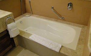 - Evite banhos de banheira – Se você puder optar entre chuveiro e banheira, escolha o primeiro. Um banho de banheira gasta, em média, 80 litros de água enquanto que o chuveiro (aberto durante cinco minutos) gasta 45 litros. Por isso, tente evitar ao máximo o banho de banheira e deixe-o apenas para ocasiões especiais. Além de economizar um bem precioso, que é a água, você reduzirá a conta no final do mês.