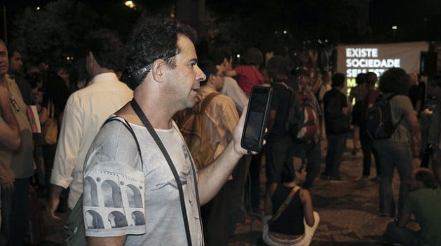 Rio de Janeiro, Brasil, 26/9/2013 – Os repórteres da Mídia Ninja, ao mesmo tempo narradores e protagonistas das manifestações de rua que aconteceram este ano no Brasil, criaram uma modalidade de informação alternativa: um jornalismo que se orgulha de ser parcial. Quando faltava pouco para começar um destes protestos, no dia 20, o “ninja” Cazú Barros se preocupava em ter bateria de reserva para seu telefone celular, pois deveria transmitir em tempo real muitas horas de um debate diante da Assembleia Legislativa do Rio de Janeiro.