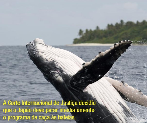 Os juízes da CIJ (Corte Internacional de Justiça) declararam, hoje, a suspensão imediata do programa de caça às baleias, subsidiado pelo governo japonês. Conhecido como “Programa Científico de Baleias”, o projeto usava o nome como pretexto para, na verdade, caçar baleias na costa pacífica.