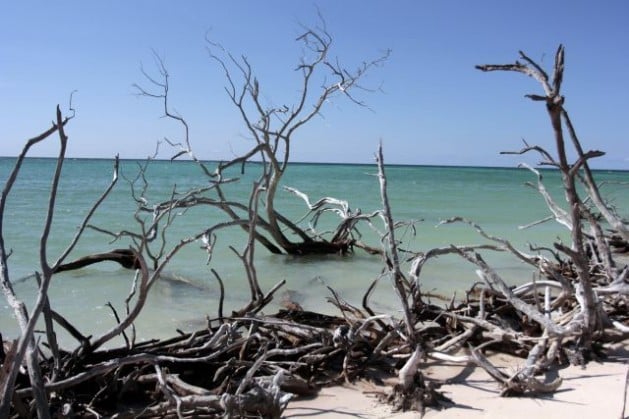 Surgidero de Batabanó, Cuba, 23/10/2013 – Na década de 1960 o governo de Cuba considerou que o armazenamento de água doce para enfrentar secas e furacões era um assunto de segurança nacional, e começou a represar rios. Essa política tem hoje uma vítima impensada: os manguezais, que já não conseguem barrar o avanço das ondas. O mar engoliu o velho caminho que ligava as praias de Batabanó e Mayabaque, no sudoeste de Cuba. Nos últimos 50 anos, foram perdidos mais de cem metros de terra. O debilitado mangue, que recebe água doce a conta-gotas, não conseguiu evitar essa perda.
