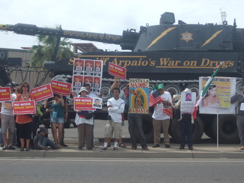 Ela participou do protesto diante da prisão de Maricopa que no dia 16 realizaram integrantes do Movimento pela Paz com Justiça e Dignidade, liderado pelo poeta mexicano Javier Sicilia, junto com ativistas dos direitos humanos das minorias dos Estados Unidos. Javier lidera uma caravana pelos Estados Unidos, de vítimas da violência que produziu no México a estratégia de segurança militarizada durante o governo do conservador Felipe Calderón, para pedir ao governo de Barack Obama o fim do contrabando de armas e uma mudança na política bélica contra as drogas.