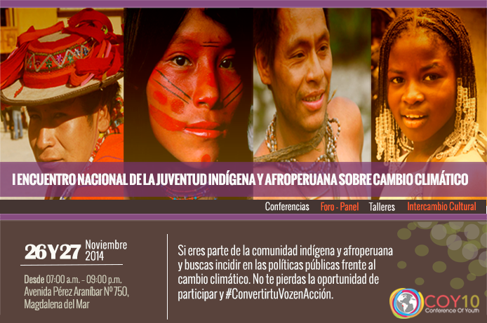 “Mas é muito difícil mudar a mentalidade porque entre os nossos povos não há consciência da relação entre mudança climática e o tempo. Por isso, pedimos aos municípios, governos regionais e o Ministério do Meio Ambiente para apoiar a nossa batalha: queremos dar visibilidade às nossas demandas, nós queremos que seja incluído um artigo sobre a proteção das minorias na Declaração Final da COP20”, diz Angie, diretor da Organização Rede de Comunicação e Juventude Afrodescente peruana.