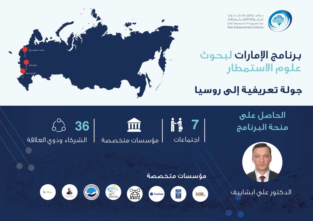 ABU DHABI, 6 de agosto de 2018 (WAM) – Um roadshow que destaca os Emirados Árabes Unidos (Emirados Árabes Unidos) Research for the Rain Enhancement Program (REP) concluiu uma série de reuniões com cientistas das principais instituições de pesquisa globais nas cidades russas de Moscou, São Petersburgo e Obninsk.