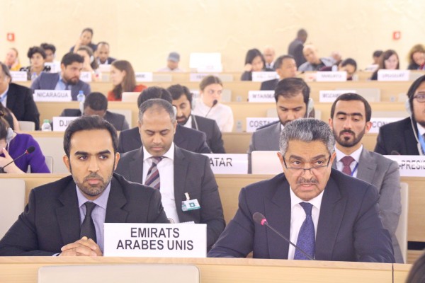Em uma declaração entregue em nome do Quarteto Árabe perante o Conselho de Direitos Humanos da ONU (CDH) como parte do direito de resposta às alegações feitas pelo Catar em um comunicado durante a 39ª sessão ordinária do conselho em relação a uma informação dos Estados Unidos. O Alto Comissário das Nações Unidas para os Direitos Humanos, Al Zaabi disse: “Os Emirados Árabes Unidos, Arábia Saudita, Bahrein e Egito não se consideram preocupados com o relatório do Relator Especial sobre o impacto negativo das medidas coercitivas unilaterais no gozo dos direitos humanos e afirma que eles não têm conexão com essas medidas”.