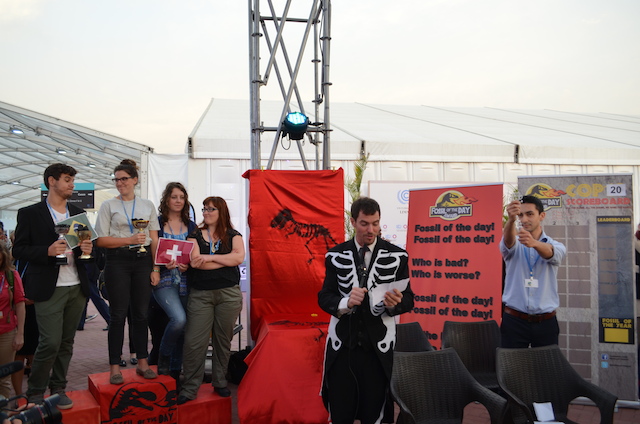 Mas a verdadeira surpresa do dia é a atribuição do “Ray of the Day”, prêmio muito raro, mas que simboliza um raio de luz em meio a tantos fossil awards. A flor da esperança foi levantada pelo AOSIS, primeiro grupo de países a apoiar durante esta COP a completa eliminação das emissões de CO2 até 2050. O que torna esta vitória ainda mais importante é que outros países se juntaram à disposição do AOSIS, especificamente o AILAC e a Noruega. Conseguir isso e, em seguida, fazer a transição para 100% de energia renovável até meados do século é nossa única esperança de nos manter abaixo do limite de 2°C. Certamente, deslocar o investimento e os subsídios dos combustíveis fósseis para as energias renováveis é um bom começo.