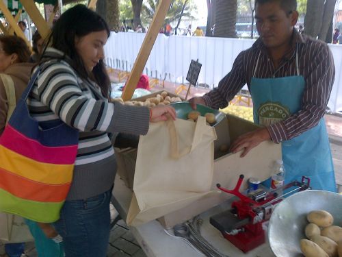 Cidade do México, México, 8/8/2012 – Isabel Becerril foi com alguns amigos ao Mercado de Troca da capital mexicana para trocar 40 quilos de resíduos recicláveis por verduras, doces e plantas. “É a primeira vez que venho, e gostei”, disse à IPS esta estudante, com uma sacola ecológica na mão.