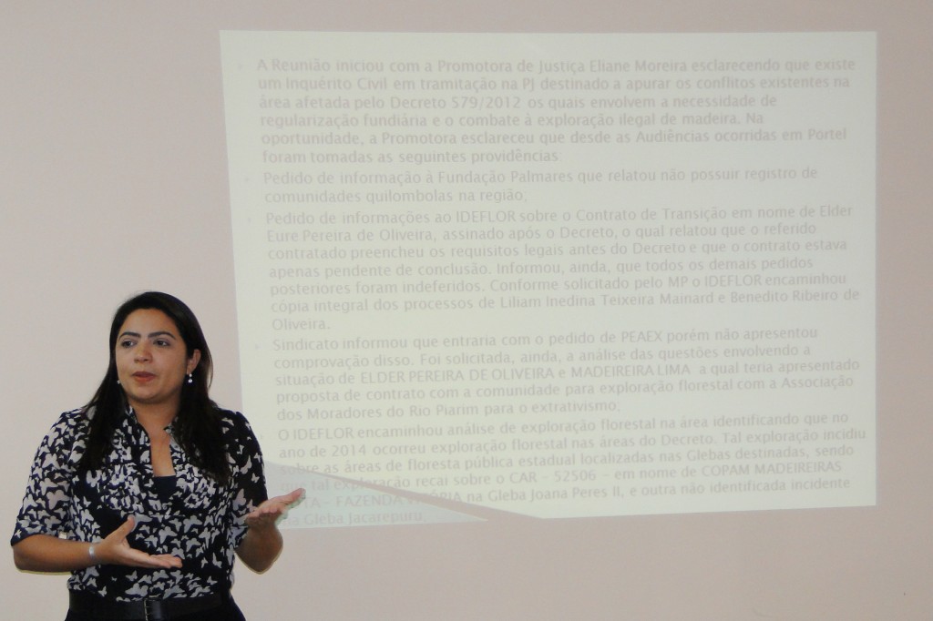 Além do compromisso de cobrar o cumprimento desses prazos, a promotora informou que foram estabelecidos mecanismos para “verificação das pessoas que estão utilizando essas áreas, ou se fazendo passar por proprietários, sem ter a documentação da terra”. Um importante resultado do encontro, segundo ela, é que “vai se iniciar – por parte da Sema, do Ideflor e do Iterpa – um pente fino na situação jurídica para clarificar as situações e dar estabilidade para as comunidades”.