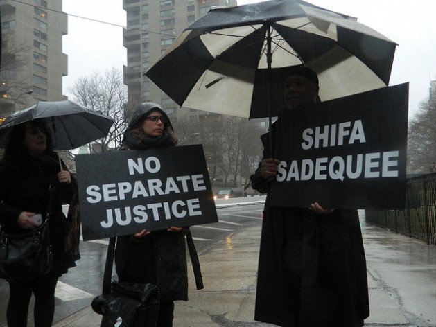 Vigílias semanais realizadas no outono de 2009 durante a emissão da sentença de Hashmi atraíram organizações pelas liberdades civis, entre elas Anistia Internacional, Conselho de Relações Árabe-Islâmicas e Centro para os Direitos Constitucionais, junto com familiares de outros muçulmanos levados à prisão, que agora se uniram em um movimento conhecido como a campanha Não a Uma Justiça Separada (NJS). “A NJS foi uma tentativa de colocar quatro assuntos cruciais sob um só guarda-chuva: vigilância e incitação, condições de confinamento, preocupações sobre um julgamento justo e o devido processo, e liberdade de expressão e acusações de apoio material”, detalhou Eberhardt à IPS.