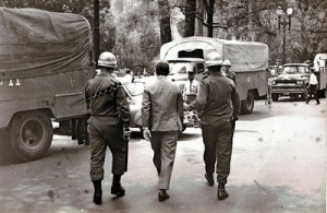 Cinquenta anos atrás eu era um estudante de 1º ano primário, estava começando a ter consciência das coisas no meu entorno quando ouvi pela primeira vez uma referência ao golpe militar de 1964. Já no segundo semestre daquele ano eu estudava em um Centro de Treinamento de Professores mantido com verbas da Unesco (e fechado poucos meses depois sob a suspeita de ser um “centro de formação de comunistas”), em Inhumas, uma cidadezinha perto de Goiânia. Todos os dias após o almoço eu andava algumas quadras até a casa de minha professora e aguardava na varanda que ela viesse para tomarmos o ônibus da escola. Em um desses dia ouço algumas vozes vindo de dentro da casa: