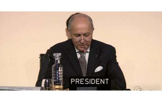 O chanceler Laurent Fabius abre a reunião do Comitê de Paris. Foto: reprodução UNFCCCTV