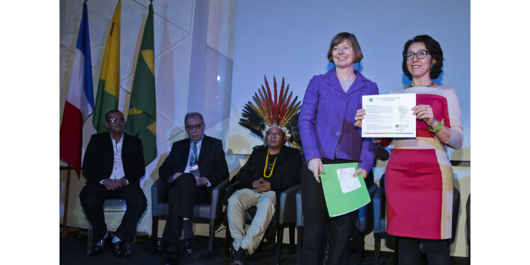 A entrega da certificação REDD+SES (Redução de Emissões por Desmatamento e Degradação Florestal com Benefícios Socioambientais) foi feita em Paris, durante a 21ª Conferência das Nações Unidas sobre Mudanças Climáticas (COP 21).