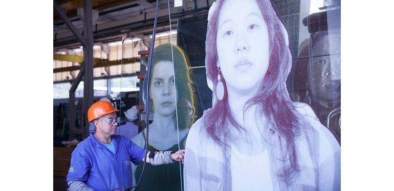 A obra é do renomado artista internacional Alex Flemming. Toda a fachada da Biblioteca Mario de Andrade estampará retratos de pessoas anônimas impressas digitalmente em vidros que pesam mais de 80 quilos.