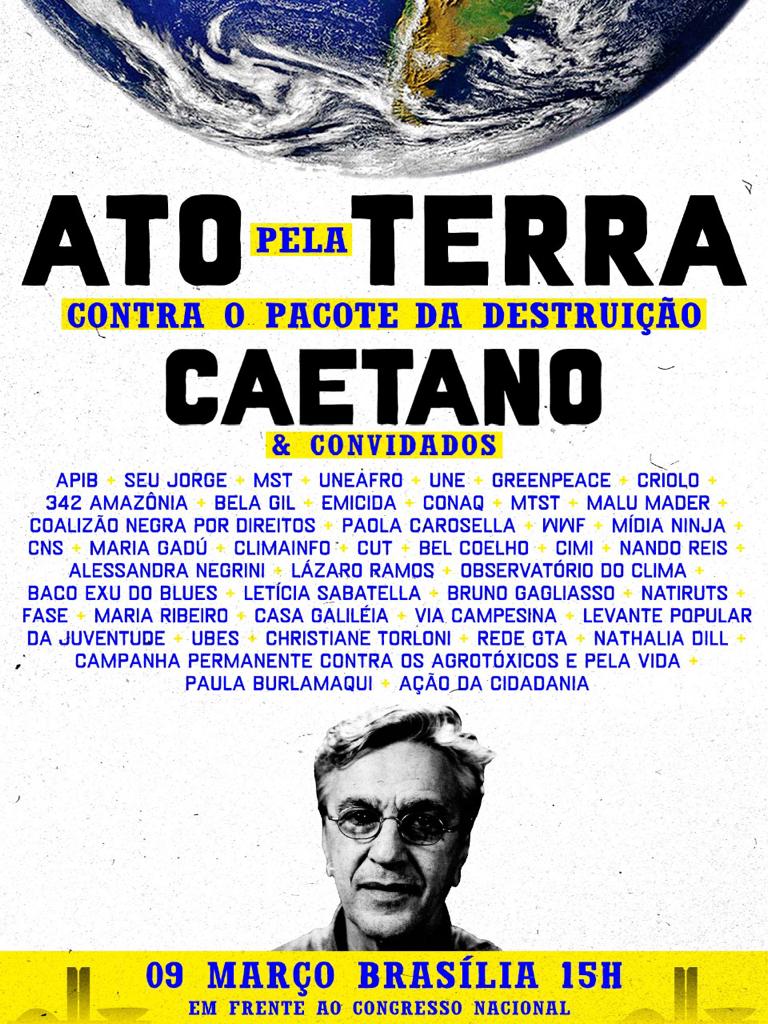 Por Guilherme Amado para o Metrópoles – O objetivo é sensibilizar o presidente do Senado pelo risco que os projetos de lei em tramitação na Casa representam contra o meio ambiente Caetano Veloso desembarcará em 9 de março em Brasília para levar um grupo de artistas ao Senado, para uma reunião com Rodrigo Pacheco.