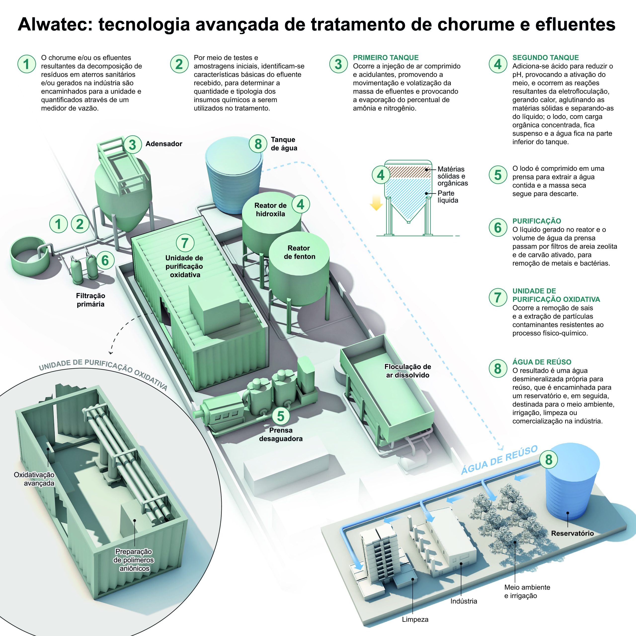 Grupo Greenline está à frente da tecnologia Alwatec, que transforma, com resíduo mínimo, o chorume em água altamente purificada para reúso; planta vai tratar até 12,5 m³ de líquido por hora.