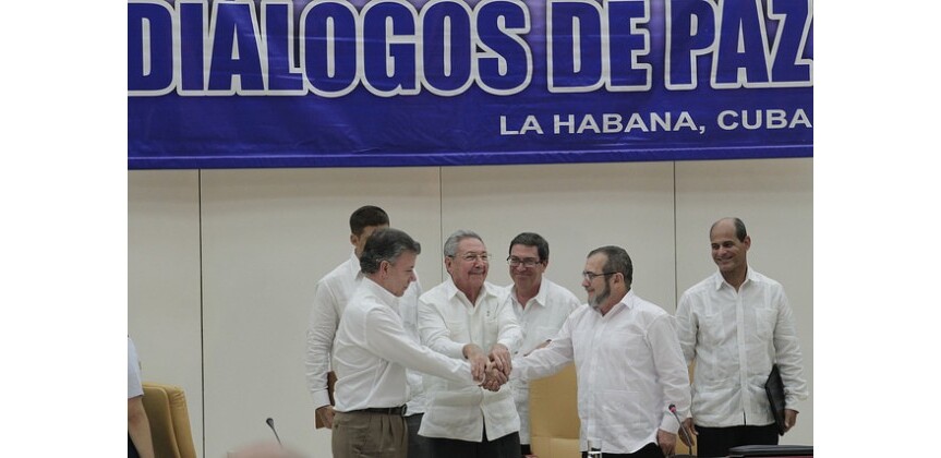 No dia 23 de setembro de 2015, Santos e o comandante máximo das Farc, Rodrigo Londoño, também conhecido como Timoléon Jiménez, ou Timochenko, apertaram as mãos, por iniciativa do presidente anfitrião, Raúl Castro. O que se pactuou nesse dia foi um acordo jurídico sobre como responderiam por seus crimes atrozes os membros do Estado, das Farc, e mais de dez mil atores privados da guerra.