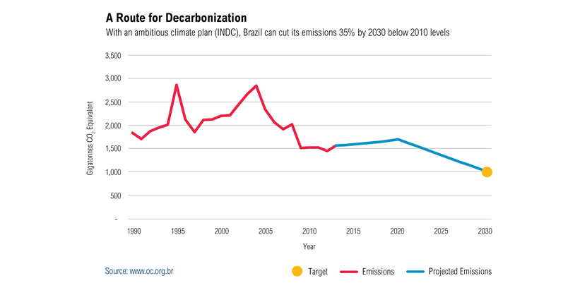 Uma equipe de especialistas das organizações integrantes do OC estudou a curva de emissões do Brasil e indicou as políticas e medidas que podem permitir que o país sul-americano atinja a meta justa e ambiciosa de 1 bilhão de toneladas cortando as emissões em três setores-chave da economia: agricultura, mudança no uso da terra e energia. Juntas, essas medidas podem efetuar uma redução de 35% nas emissões de gases de efeito estufa em relação aos níveis de 2010 (1.545 GtCO2e, não incluindo florestas em terras indígenas e áreas protegidas).