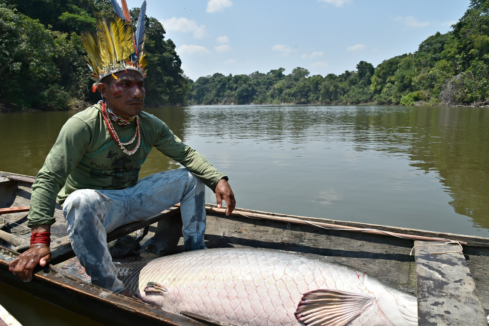 Em 2009, essa história mudou quando o povo Deni decidiu parar de pescar o pirarucu e adotar um plano de manejo. Só assim o peixe gigante poderia voltar a procriar e engordar livremente. Há relatos de pirarucus com quase 200 quilos e mais de 2 metros de comprimento. Em agosto de 2016, Pha Avi se lembra bem, havia um clima festivo no rio Xeruã. Com alegria, gritos e o barulho de motores rabeta, os Deni fizeram a primeira retirada de pescado do manejo, após o defeso, com autorização dada pelo Instituto Brasileiro de Meio Ambiente e Recursos Naturais Renováveis (Ibama).