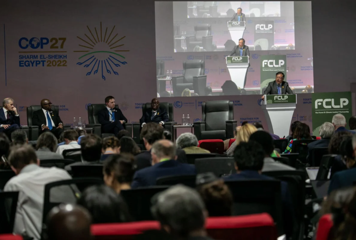 Gustavo Petro durante discurso no lançamento da parceria entre países para manter viva a promessa de zerar o desmatamento em todo o mundo até 2030, na COP27 / Presidência da Colômbia