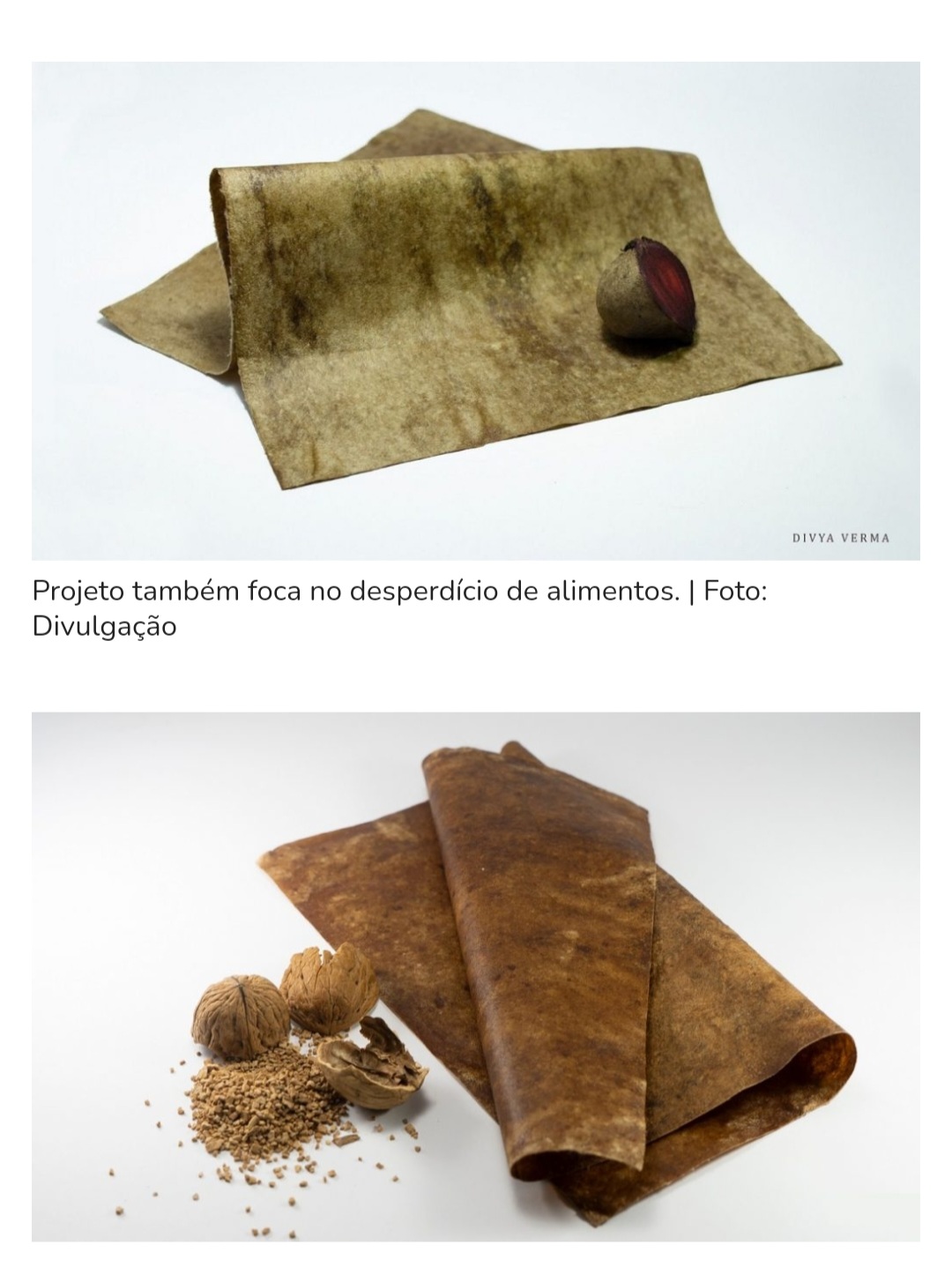 “[Fiquei] curioso sobre as propriedades dos resíduos orgânicos. Enquanto pesquisava sobre seus valores nutricionais, aprendi como o desperdício de alimentos acaba nos aterros sanitários, apodrece e libera gases nocivos do efeito estufa, como o metano, contribuindo para o aquecimento global. Da mesma forma, os resíduos de fibras das indústrias têxteis poluem os corpos d’água, entram em nossa cadeia alimentar e prejudicam em grande medida a vida em terra e debaixo d’água. Isso me motivou a criar um novo material que utiliza recursos naturais renováveis e ajuda na gestão de resíduos”, conta.