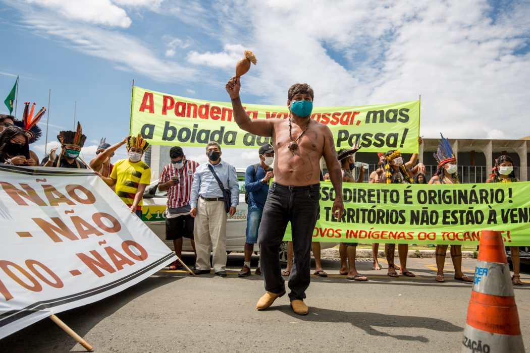 Com o apoio de organizações e parceiros, os indígenas construíram barreiras de contenção nas entradas dos territórios, a fim de evitar a disseminação do coronavírus. Contrariada, a Fundação Nacional do Índio (Funai), que deveria zelar pela vida dos povos originários, fez justamente o contrário: criou uma campanha com o slogan “o Brasil não pode parar”. Assim, os invasores receberam um “passe-livre” do Ministério do Meio Ambiente, da Sesai e da Funai para “passar a boiada” dentro das TIs.