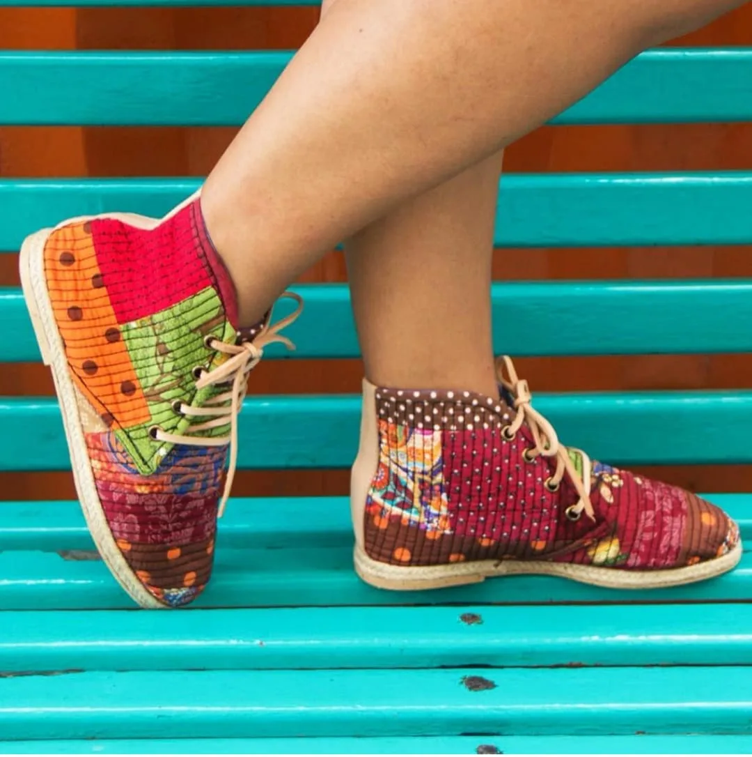 A marca também trabalha o resgate e a manutenção do modo artesanal de fazer roupa e valoriza a forma ancestral de costura por meio do uso de costura manual, bordados, aplicações, patchwork, crochê e outras artes manuais, respeitando o tempo, o processo criativo e as pessoas. “Trabalhamos com moda autoral sustentável, com resíduos têxteis gerados pelo ateliê para evitar o descarte no meio ambiente. Estamos fazendo também a transição para um sistema de energia solar, cuidamos dos colaboradores e nos preocupamos com o preço justo. Usamos, por exemplo, botões com casca de coco, de ouriço, de castanha do Pará e da concha de ostra descartada do meio ambiente.”