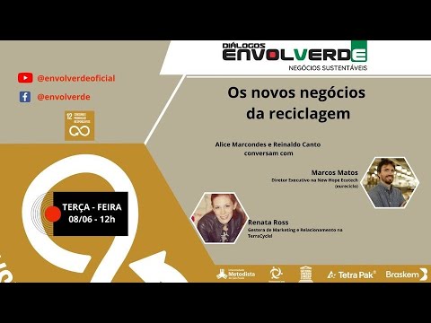 Na estreia dos Diálogos Envolverde Negócios Sustentáveis vamos apresentar dois projetos que mostram como existem oportunidades interessantes na área da reciclagem. Nossos convidados são: Marcos Matos, Diretor Executivo na New Hope Ecotech (eureciclo) e Renata Ross, gestora de Marketing e Relacionamento na TerraCycle. Terça-feira, 08/06, ao meio-dia transmissão pelo Facebook e pelo Youtube da Envolverde.