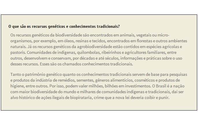 A Lei 13.123/2015 causou estragos que não podem ser revertidos com sua regulamentação. Por exemplo, ao separar o patrimônio genético do conhecimento tradicional, criando a possibilidade de sistemas distintos de acesso, a Lei estabeleceu uma forma de usar o patrimônio genético brasileiro, muitas vezes resultado das atividades das comunidades humanas que aqui viviam e vivem, sem nenhuma consulta, sem nenhuma autorização, de forma automática.