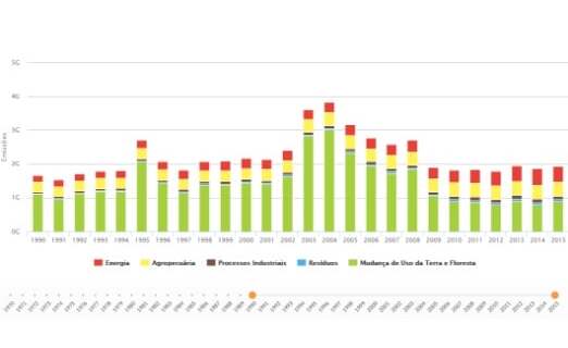 De acordo com o sistema, o Brasil emitiu 1,927 bilhão de toneladas brutas de CO2 equivalente (CO2e, a soma de todos os gases de efeito estufa convertidos em dióxido de carbono) no ano passado, contra 1,861 bilhão de toneladas em 2014.