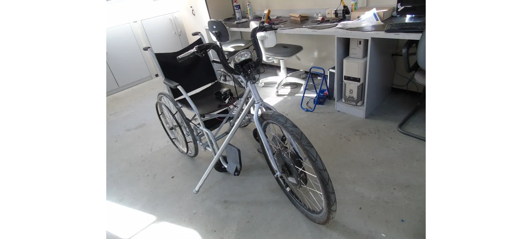 O grande desafio didático foi criar um equipamento que se tornasse uma realidade dentro das limitações de um cadeirante. Os estudantes adaptaram em uma cadeira de rodas manual o guidão com a roda dianteira de uma bicicleta, acrescentando um motor abaixo do assento e dispositivos de segurança e controle para o usuário. Neste protótipo, a capacidade máxima do triciclo é de até 150 quilos.