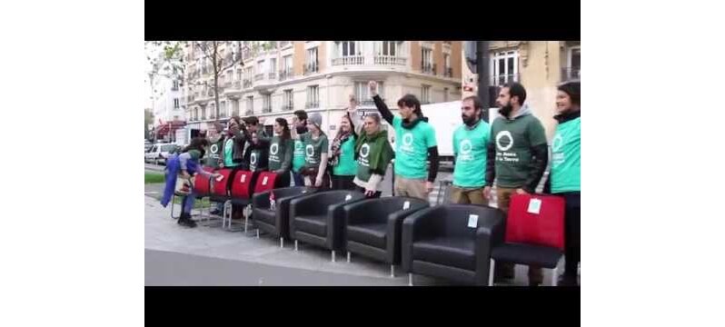 “Existe dinheiro para o clima. Ele está nos paraísos fiscais” afirmou Gabriel Mazzolini, da ONG Amigos da Terra em Paris. A organização está confiscando de maneira pacífica até a COP de Paris cadeiras de sucursais de bancos que tenham casos de fraude fiscal e de evasão de dinheiro nos paraísos fiscais. As cadeiras serão custodiadas por personalidades globais como Susan George ou Patrick Viveret e serão devolvidas quando os bancos devolvam os recursos aos cidadãos. Em escândalo divulgado no começo do ano, o HSBC teria fraudado US$ 180 bilhões, lembra Mazzolini. (veja abaixo o vídeo da ação em Paris).