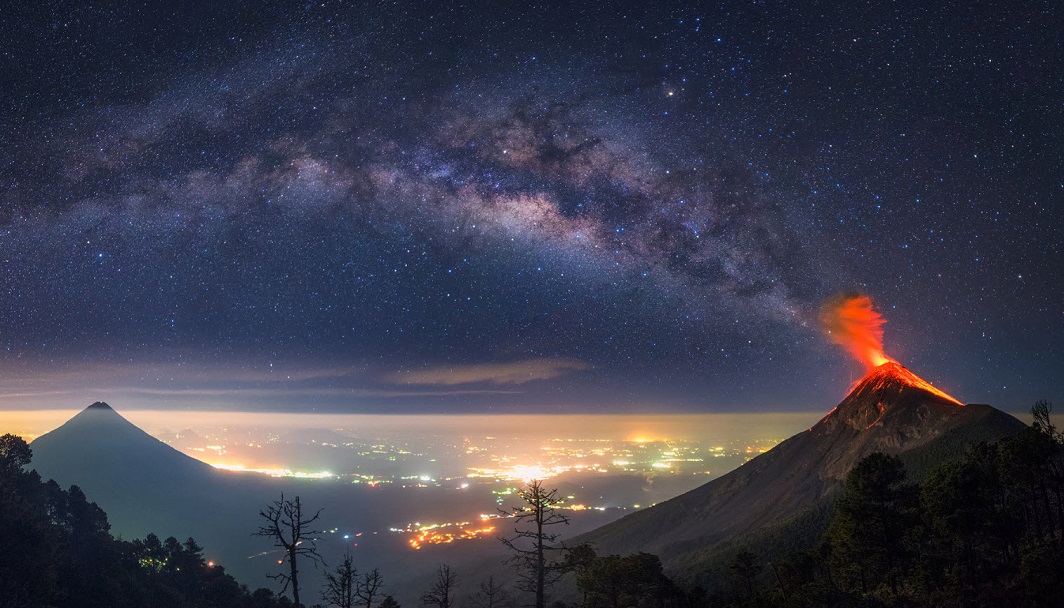 Fotografada a Via Láctea por cima de um vulcão em erupção