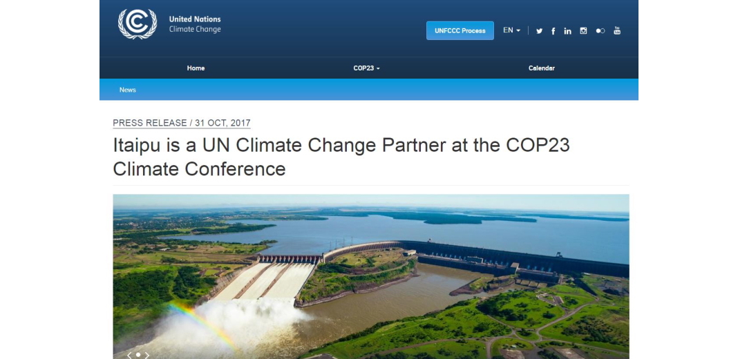 Itaipu é parceira da ONU Mudanças Climáticas na Conferência do Clima COP 23