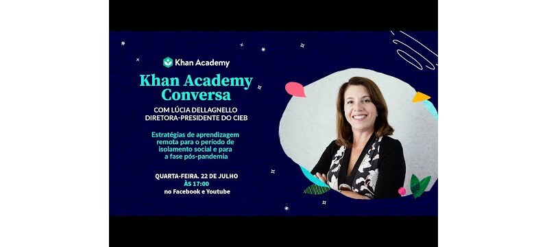 Em um projeto com o objetivo de fomentar discussões sobre o mercado de educação e ensino online, a organização sem fins lucrativos Khan Academy, por meio do Khan Academy Conversa, trouxe na última quarta-feira (22), a diretora-presidente do CEIB (Centro de Inovação para a Educação Brasileira), Lúcia Dellagnelo. O mote das discussões tratou sobre estratégias de aprendizagem remota para o período de isolamento social e para a retomada das atividades no pós-pandemia.