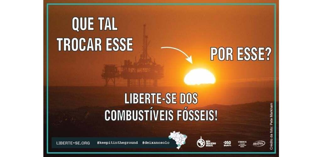 350.org Brasil organiza o LIBERTE-SE com entidades parceiras como a COESUS – Coalizão Não Fracking Brasil, Fundação Cooperlivre Arayara, Fórum Ceará no Clima, Cáritas Brasileira, Rede Evangélica Paranaense de Ação Social (Repas), UniSustentável, IBEN, Observatório Latino-Americano, entre outras. Para saber mais basta acessar https://liberte-se.org/ .
