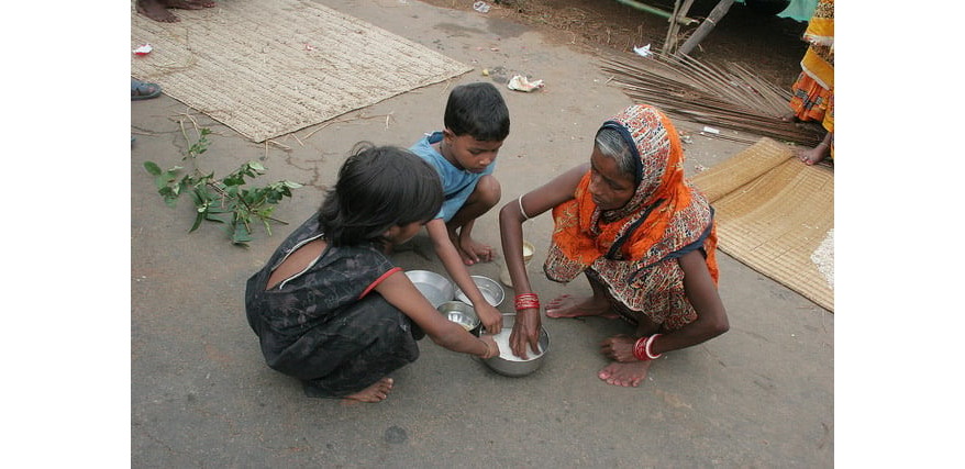 Uma semana depois de a água ter arrasado sua casa, esta família de Odisha continua vivendo na rua. O pai teve que ir trabalhar no vizinho Estado de Andhra Pradesh. Foto: Manipadma Jena/IPS