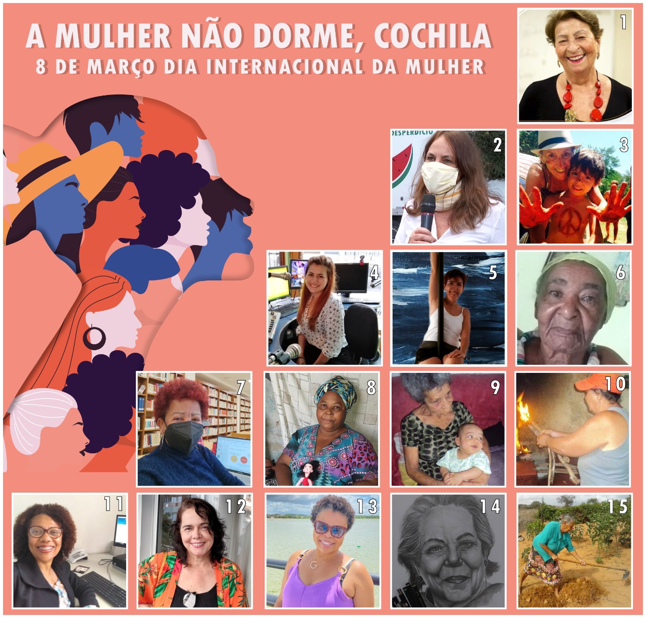 Firme, forte, sem desistir do seu papel agregador, a mulher segue na luta, em atuação permanente em todas as áreas da vida: na Academia, na ciência, na política, no esporte, nas artes, na pesquisa avançada, no intercâmbio entre países, nas residências, na agricultura, no artesanato, na moda, na culinária, nos cuidados e afetos.