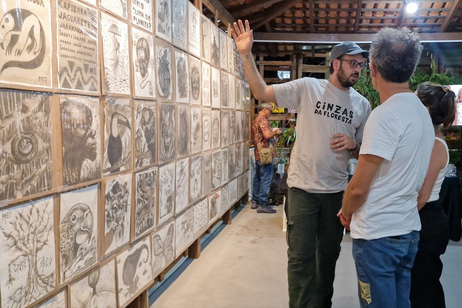 Mundano é o autor do icônico mural “O Brigadista” – uma releitura de uma obra de Cândido Portinari que, em pleno centro de São Paulo, homenageia esses heróis anônimos. Agora, na COP30, Mundano lidera uma exposição das obras de vários artistas do Brasil e outros países que também fizeram uso das cinzas em suas produções. Todas estão à venda e todo valor arrecadado será destinado para a Rede Nacional de Brigadas Voluntárias (RNBV), uma união de organizações e coletivos independentes que atuam em todo o país na educação ambiental, prevenção e combate aos incêndios. Os recursos serão convertidos na formação de brigadistas, compra de equipamentos e fortalecimento das ações de quem está na linha de frente no combate aos incêndios florestais.