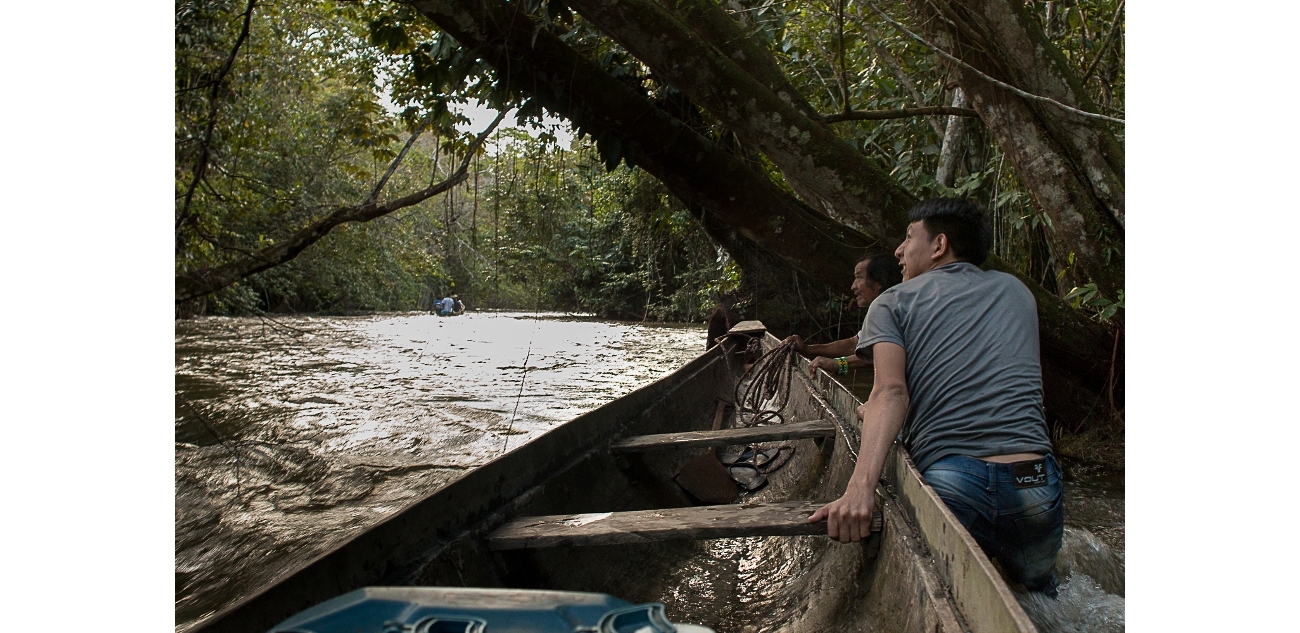 A coisa não parece ir bem. O casco raspa numa pedra, depois em outra, com mais força, depois mais uma, e a canoa entala. Ergue o bico e fica ali, no meio da corredeira. Dá a impressão de que a qualquer instante vai se partir em dois. As mulheres, as crianças e os homens conversam entre si na sua língua nativa, Katxuyana, e ninguém se sobressalta. O bebê mama. Mas a canoa segue empacada. Até que o cacique Juventino Perisima Kaxuyana, 54 anos, se joga na água, pondo-se em pé, sobre o leito do rio.