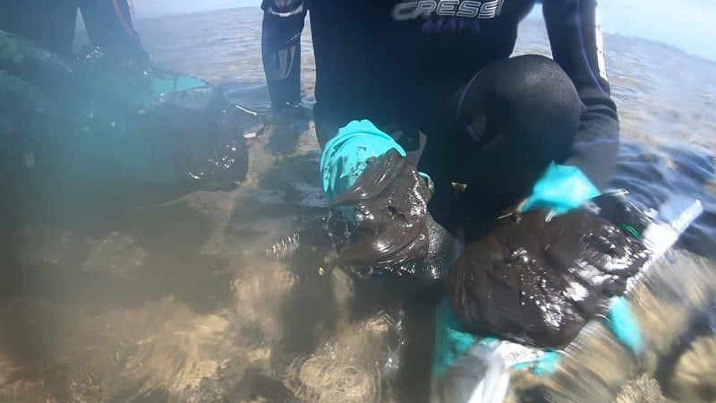 Os biólogos do Projeto Conservação Recifal foram alertados sobre a presença da substância no local por uma moradora da região. “Vim pegar polvo, aí vi todo esse óleo e voltei para casa chorando”, disse a pescadora.
