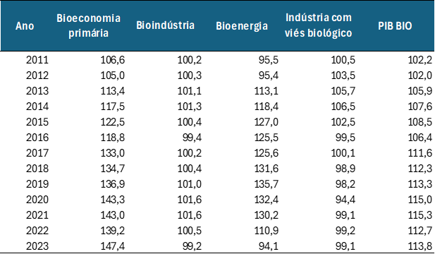 Tabela 3. Série encadeada de volume do PIB-Bio e suas atividades – 2010 = 100.