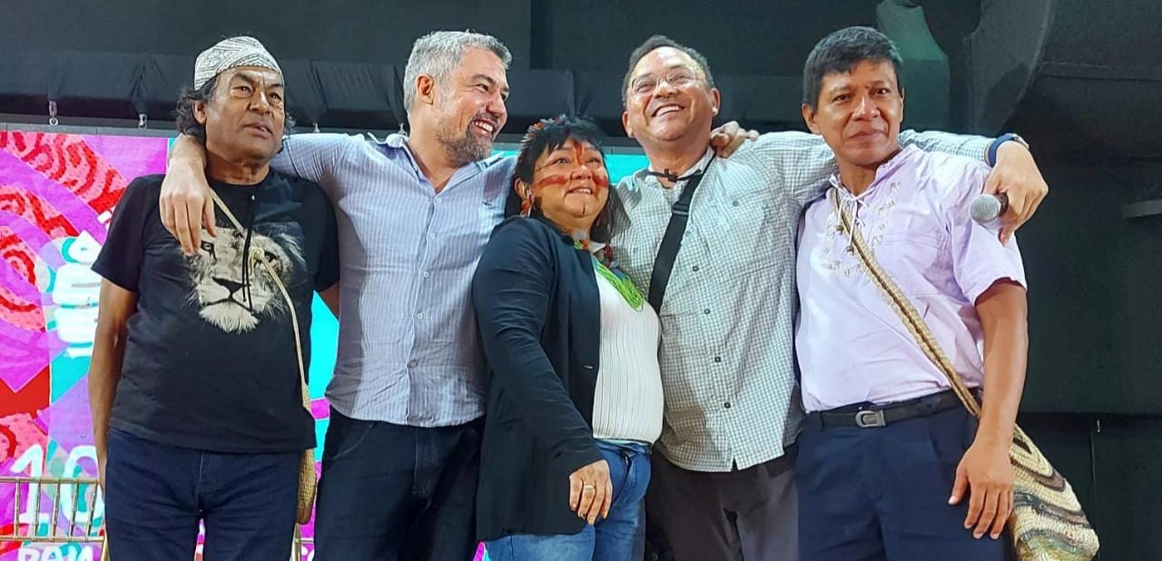 *Crédito da imagem destacada: O filósofo Aylton Krenak, o geógrafo e roteirista Bruno Malheiro, a cacica do povo Akrãtikatêjê Kátia Silene, o diretor e jornalista Marcos Cólon e a liderança espiritual indígena do povo Kukama do Peru José Manuyama, conhecido como Pepe.