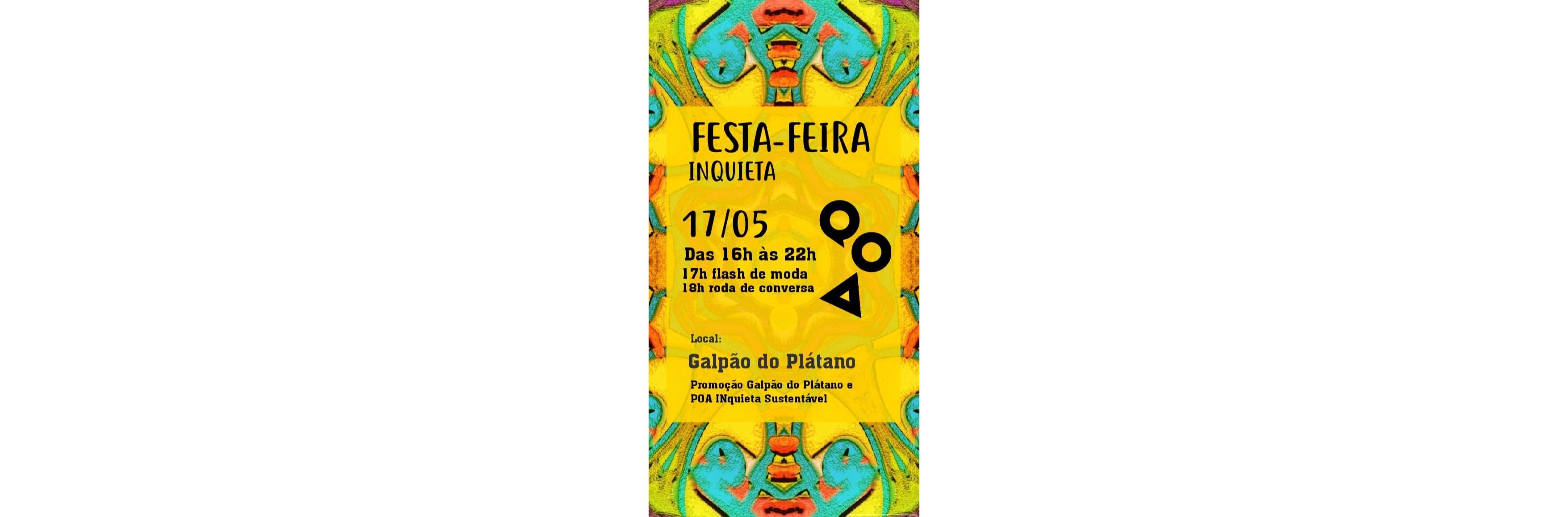 E exatamente um recorte sobre esse universo que será mostrado no flash de moda que será realizado nesta sexta-feira, dia 17 de maio, da Festa-feira INquieta. O evento será realizado no Galpão do Plátano (Rua Gen. João Manoel,627), no coração do Centro de Porto Alegre. A promoção é do POA INquieta Sustentável e do Galpão do Plátano e começará às 17h. Estarão presentes marcas como Colorê, Mudha, Tsuru, UmPraUm, Resto Zero, RGLOOR, 2B Comfy Wear e acessórios SilvAna.
