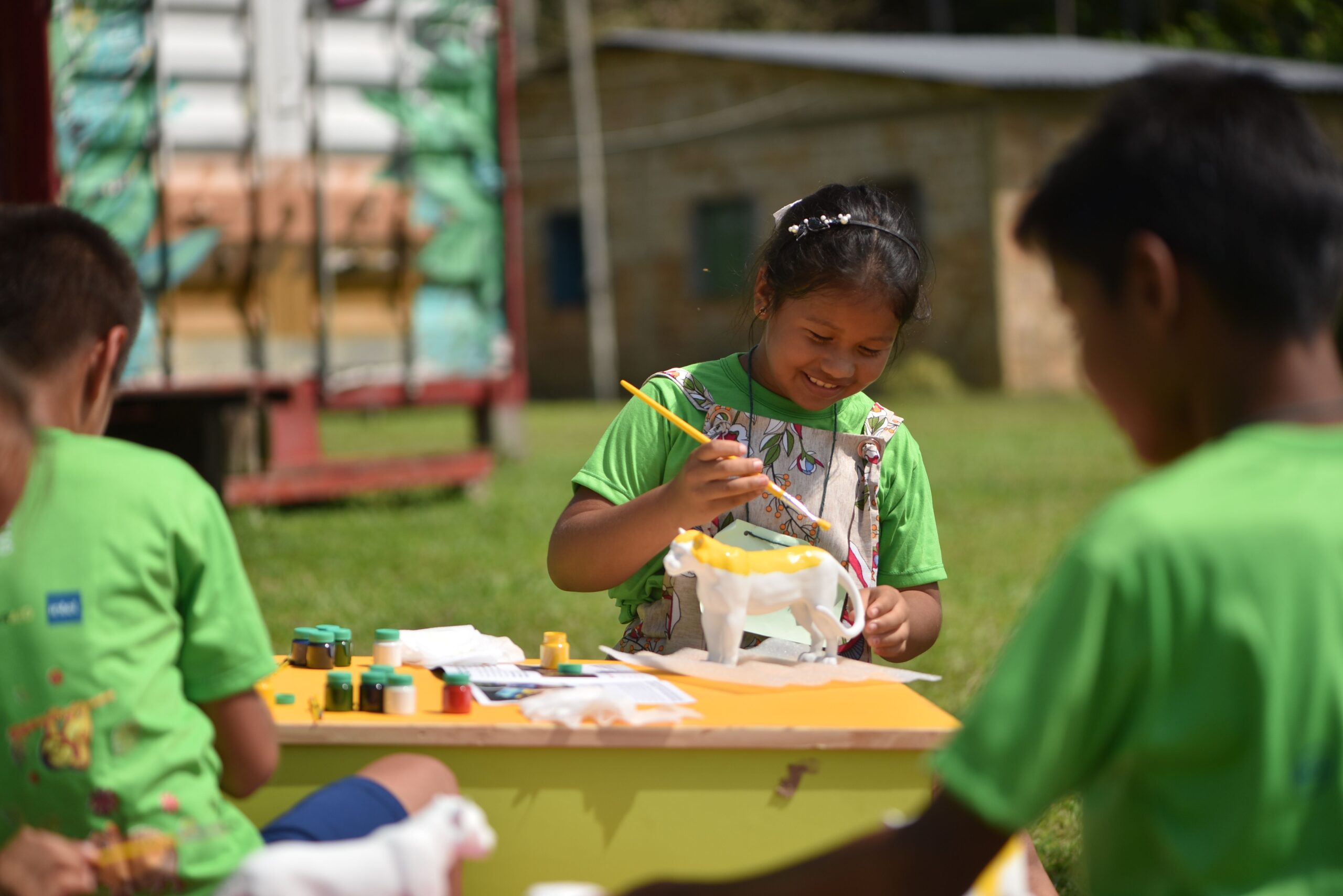 Com o público total de 100 crianças, oriundas de 10 comunidades ribeirinhas e indígenas do entorno da RDS do Rio Amapá, a atividade capturou a atenção dos pequenos com a pintura de mini esculturas de onças que tinham como intuito final a conscientização para a conservação desta espécie emblemática da fauna amazônica.