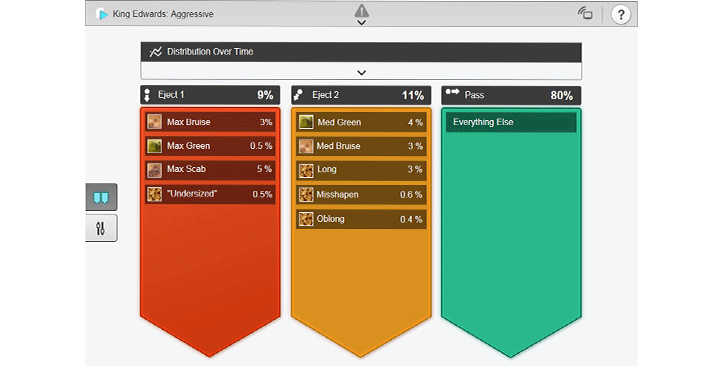 O TOMRA ACT fornece informações de classificação e dados de processo em tempo real rapidamente por meio de gráficos fáceis de entender. Com essas informações claras, o operador pode monitorar melhor o processo de classificação e fazer ajustes rápidos a qualquer momento. O feedback rápido sobre o desempenho e rendimento da máquina permite otimizar o processo, maximizando a produtividade e a eficiência. Com a nova IU de última geração, as tarefas de controle do classificador parecem naturais e fazem parte do processo de produção.